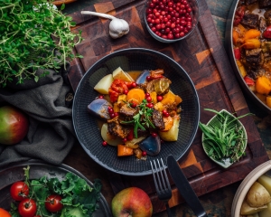 Esimerkiksi hitaasti haudutettu omenainen lihapata on syysruokaa parhaimmillaan! Pata on murea, mehevä ja lämmittää niin vatsaa kuin mieltä ja sisältää jopa 12 eri kasvikunnan tuotetta.