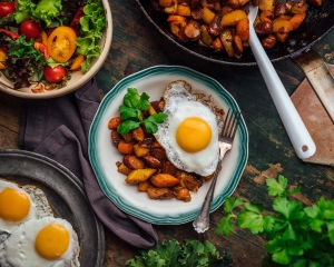 Kokeile esimerkiksi juurespyttipannua, joka on helppo ja täyttävä arki-illan ruoka. Rapea kananmuna kruunaa annoksen.