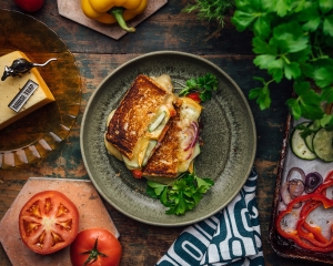 Grilled Cheese on klassinen lohtuleipä, joka saa tässä reseptissä raikkaan syystwistin. Paahdetut kesäkurpitsat, paprika ja tomaatti tekevät leivistä ruokaisat ja värikkäät. Täydellinen iltapala tai viikonlopun herkku.