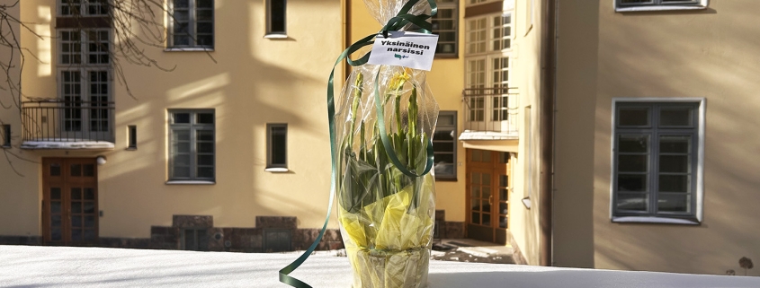 Yksinäinen narsissi -nimellä kulkeva tempaus järjestetään yhteistyössä paikallisten puutarhojen ja kukkakauppojen kanssa. Yksinäiset narsisit odottavat löytäjiään keskiviikkona kadunkulmissa, puistonpenkeillä, bussipysäkeillä ja muilla näkyvillä paikoilla. Löydetyistä narsisseista voi kertoa sosiaalisessa mediassa merkkaamalla kuvaan @kauniistikotimainen ja #yksinäinennarsissi.